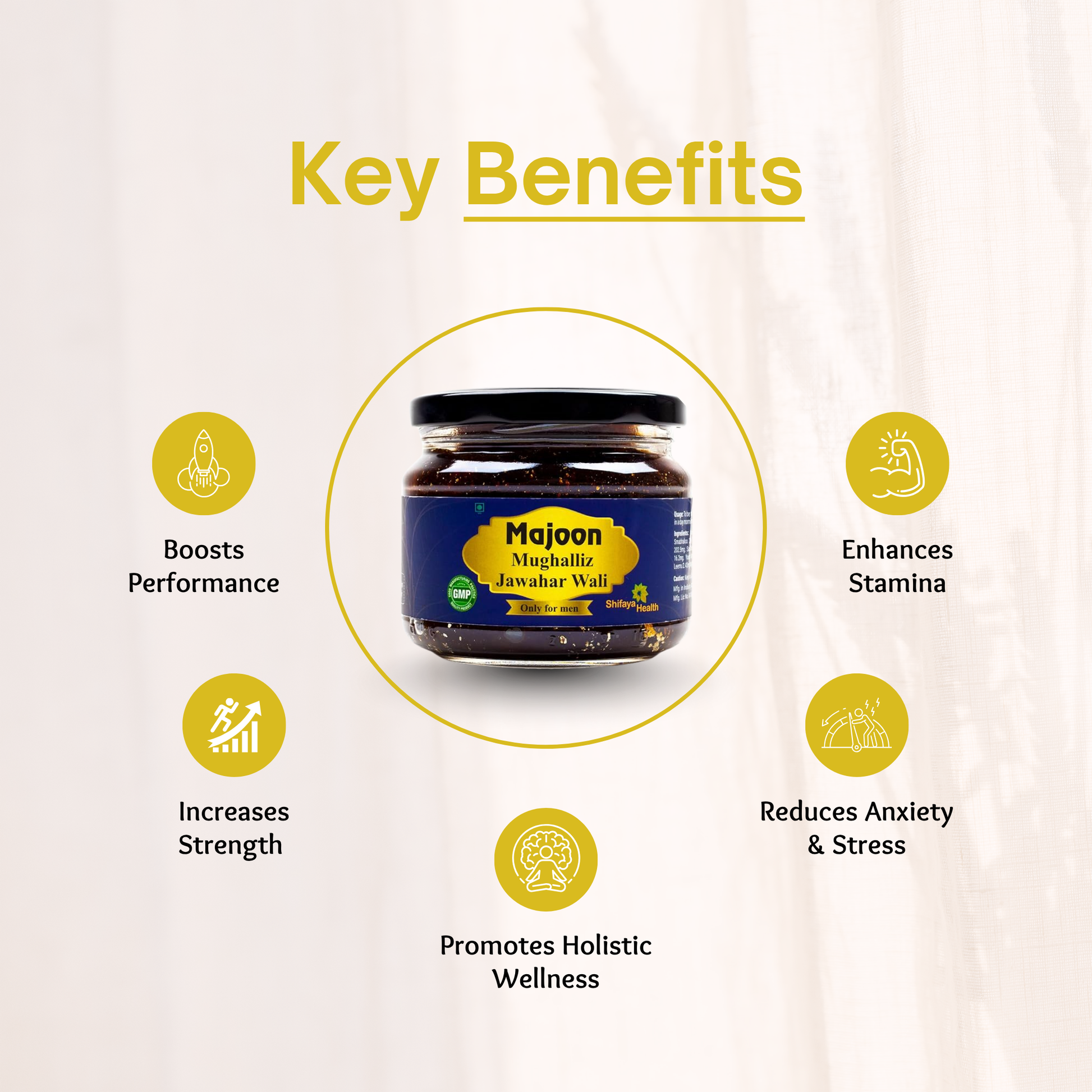 Majoon Mughalliz Jawahar Wali is a classical Unani formulation designed to support men’s overall health and vitality. Enriched with time-tested natural ingredients, it helps improve stamina, strength, and energy levels. This supplement is traditionally used to enhance performance, reduce fatigue, and promote general well-being, making it a trusted choice for men’s health.